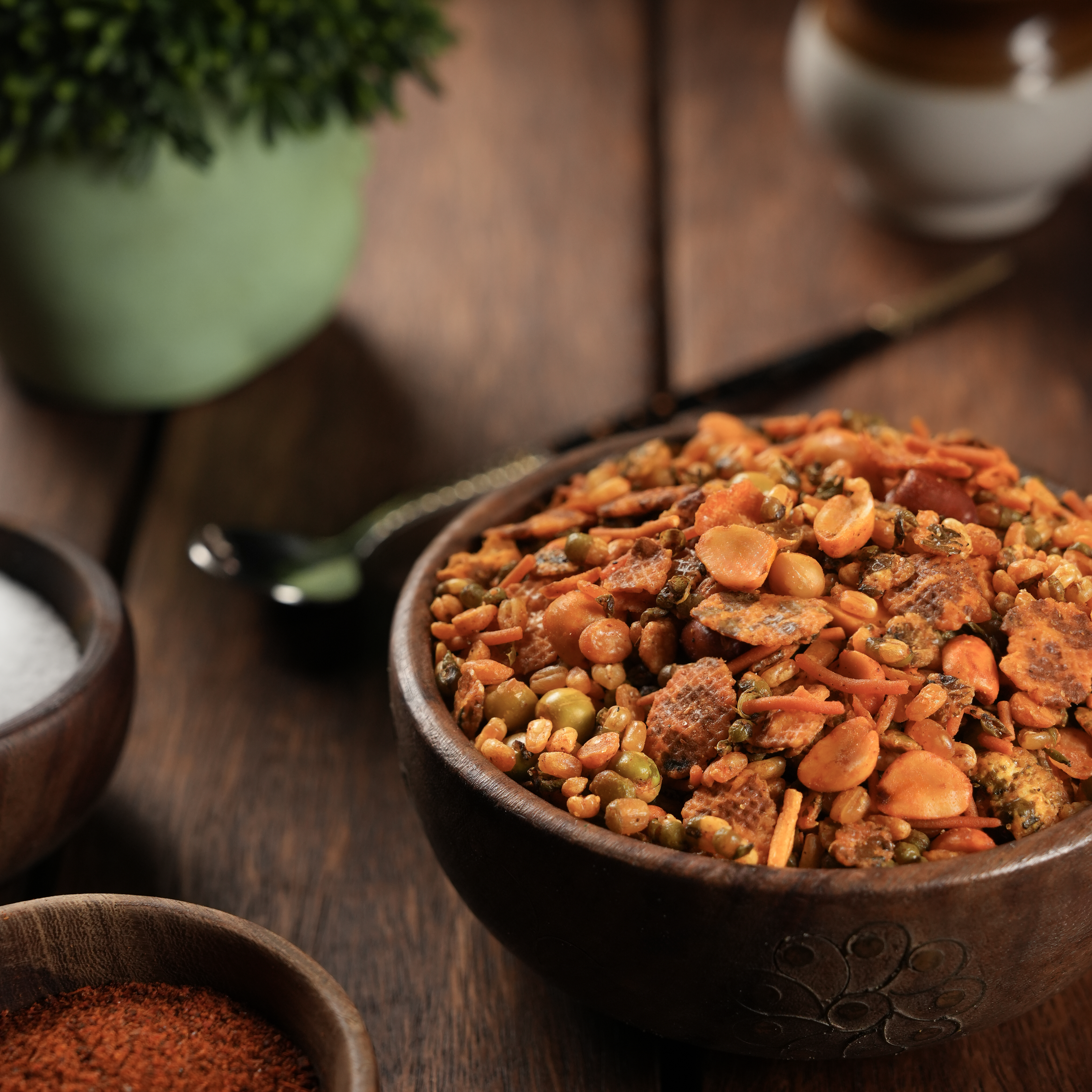 A fiery and crunchy blend inspired by the bold spices of Kolhapur, this mix is for those who love their snacks with a real kick.